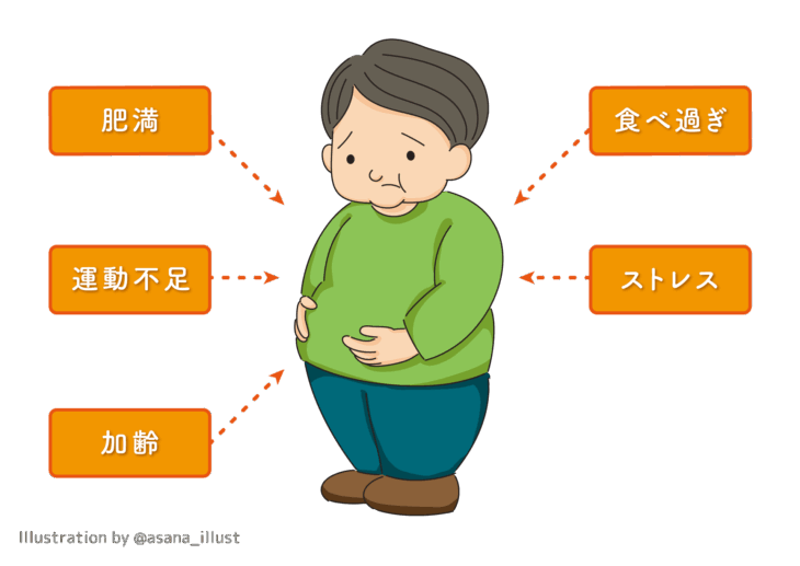 また、摂取カロリーが消費カロリーを上回った状態が続くことで、肥満に陥るリスクも高まります。